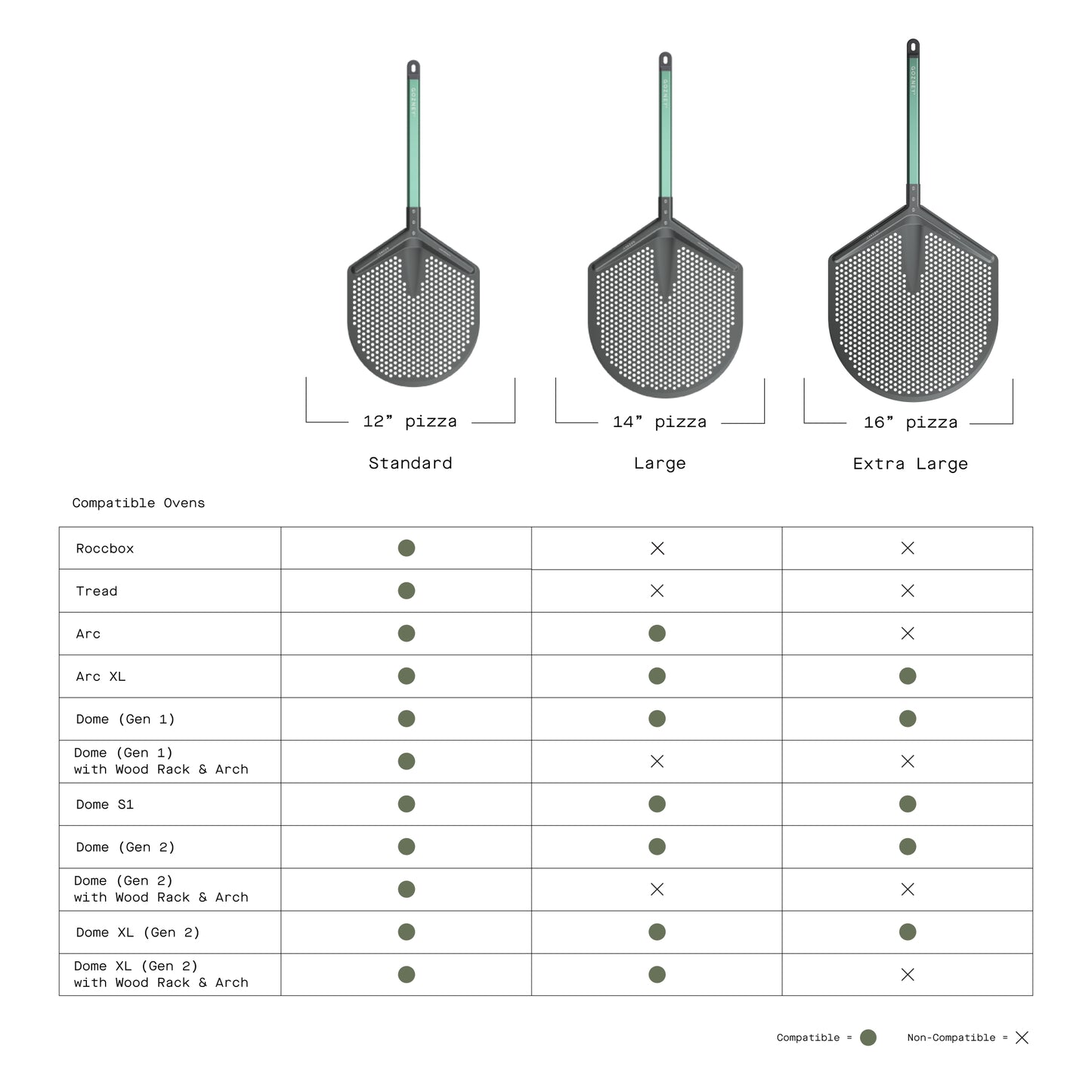 - Available in standard (12” pizza), large (14” pizza), and extra large (16" pizza) blade sizes