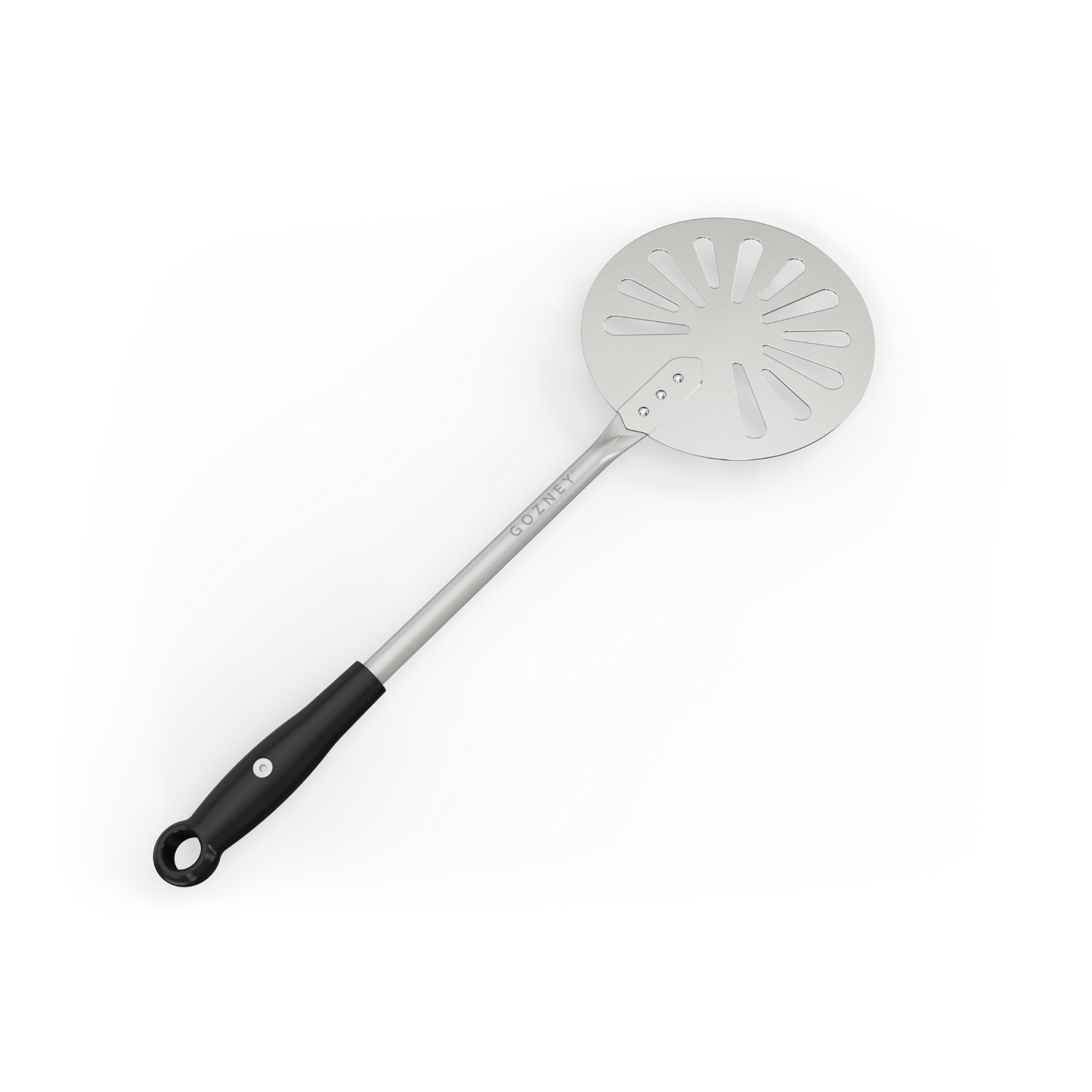 After using the Roccbox Pizza Peel to place fresh pizza inside Roccbox, utilize the Roccbox Turning Peel to slide and turn the pizza simply and easily while cooking. Incorporating a slimline, circular surface, the peel fits easily beneath a partially cooked dough base, enabling the gentle turning or maneuvering of baked goods within the oven.